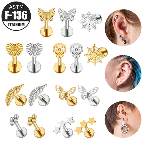 Bijoux de Piercing en titane de qualité Implant, Base plate Simple, tige de Labret filetée à l'intérieur, 16G