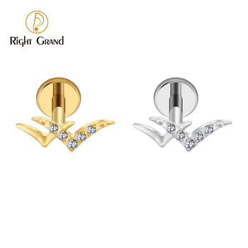 Titanium Internal Thread Double Wild Goose Flat Back Labret 16G Tiny Flying Bird Cartilage Tragus Ear Piercing Jewelry