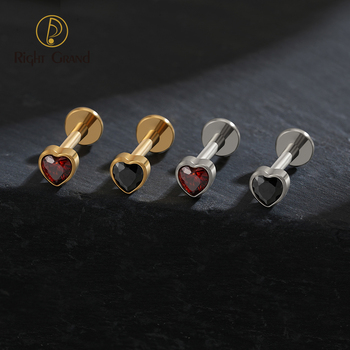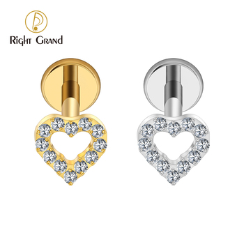 Internal Thread Heart Shaped CZ Labret Ring 16G Flat Back Cartilage Stud Earring Conch Helix Lip Titanium Piercing Jewelry