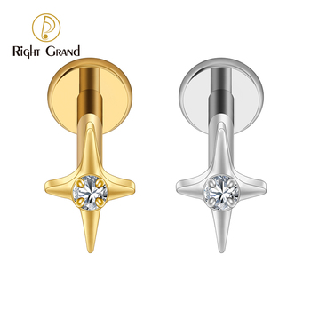Four Point Star Flat Back Stud 16G Titanium Internal Thread Tiny CZ Cartilage Earring Helix Tragus Nose Piercing Jewelry
