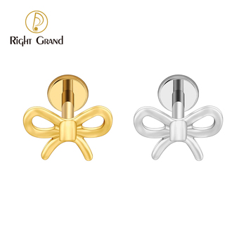 Bow Knot Flat Back Earring for Cartilage Helix Tragus Lobe 16G Titanium Internal Thread Tiny Knot Ear Piercing Nose Stud