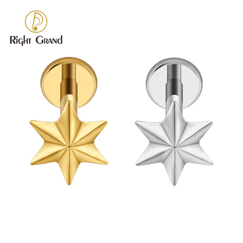 Titanium 3D Star Internal Thread Labret Stud 16G Six Point Star Cartilage Earring Flat Back Helix Tragus Piercing