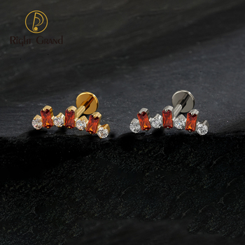 ASTM F136 Baguette CZ Climber Stud Earring Cluster Cartilage Helix Labret Titanium 16G Internal Threaded Stud Piercing